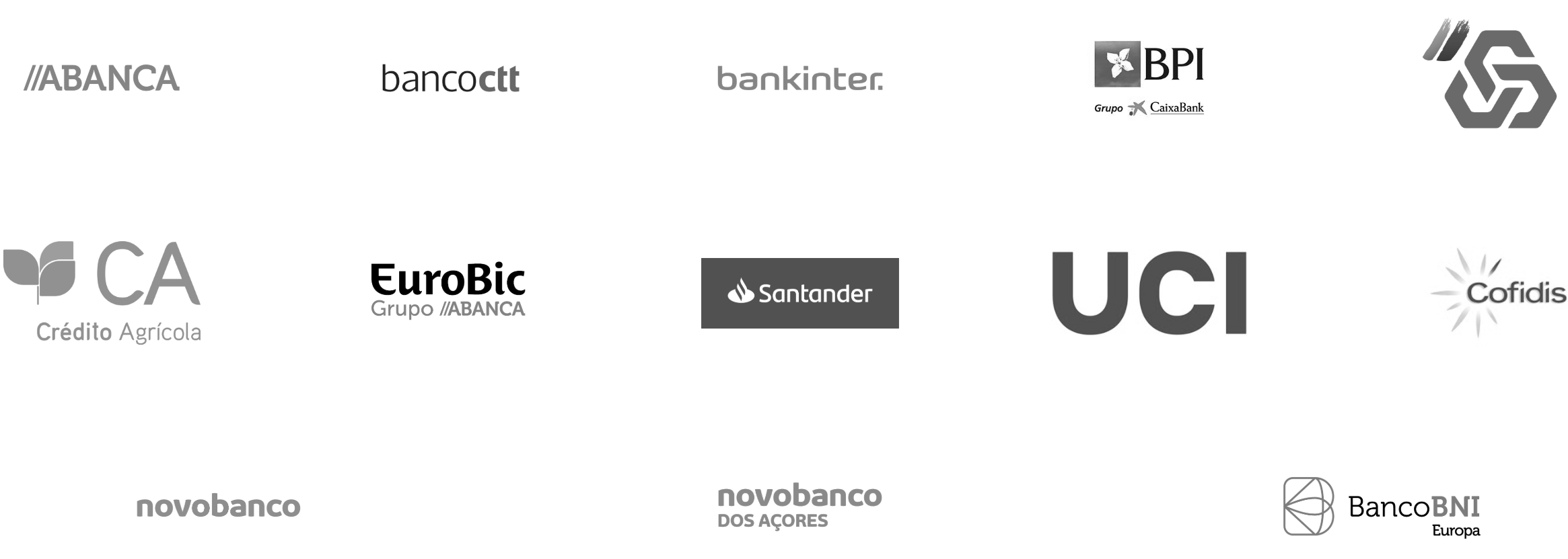 CAIXA GERAL DE DEPÓSITOS, S.A.NOVO BANCO, S.A.ABANCA CORPORACIÓN BANCARIA, S.A., SUCURSAL EM PORTUGALBANKINTER, S.A. - SUCURSAL EM PORTUGALUNION DE CRÉDITOS INMOBILIÁRIOS, S.A., ESTABLECIMIENTO FINANCIERO DE CRÉDITO (SOCIEDAD UNIPERSONAL) - SUCURSAL EM PORTUGALBANCO CTT, S.A.NOVO BANCO DOS AÇORES, SAUNICRE - INSTITUIÇÃO FINANCEIRA DE CRÉDITO, S.A.BANCO BPI S.A.SICAM - CAIXA CENTRAL E CAIXAS DE CRÉDITO AGRÍCOLA MÚTUO.